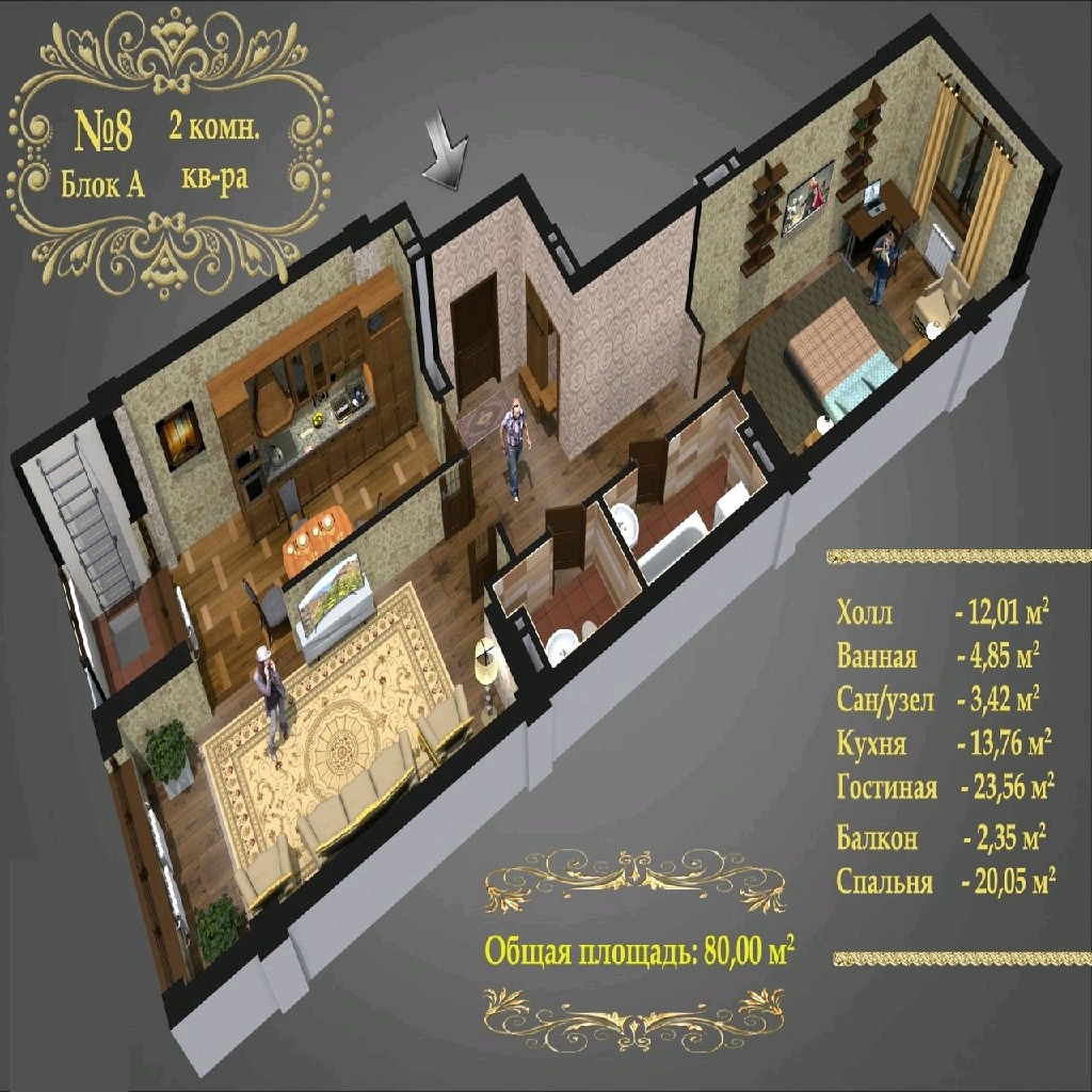 Площадь 80м2